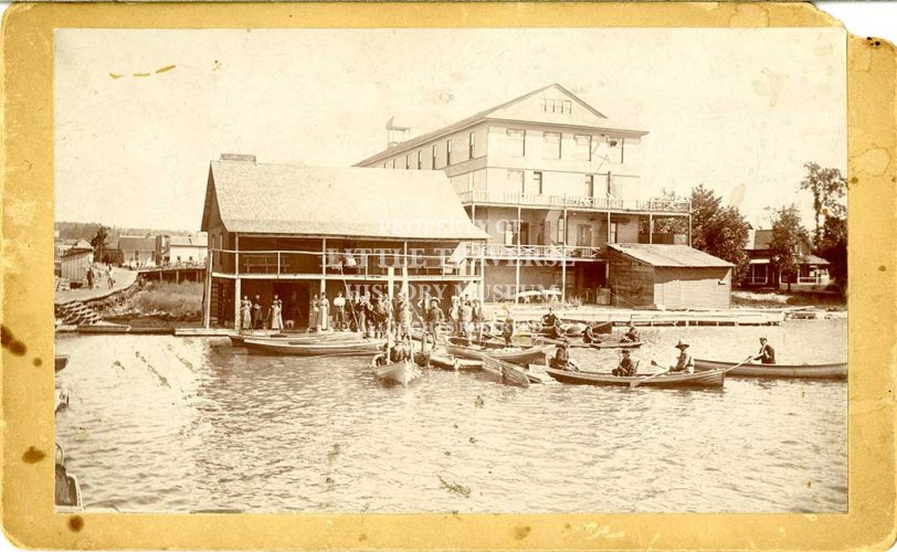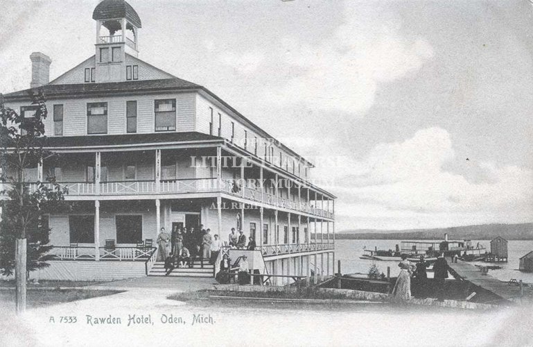The Oden Hotel was built in 1895 to resemble the shape of a steamer, and was located on the lakefront south of Main Street, it was sold shortly afterwards to J. D. Rawdon, and was renamed the Rawdon Hotel .