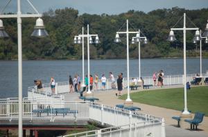 The park contains a large group picnic shelter, band shelter, lake-front gazebo, playground, boat launch ramps, limited docking facilities, parking, and several hundred feet of Lake Macatawa frontage with boardwalks and fishing decks.