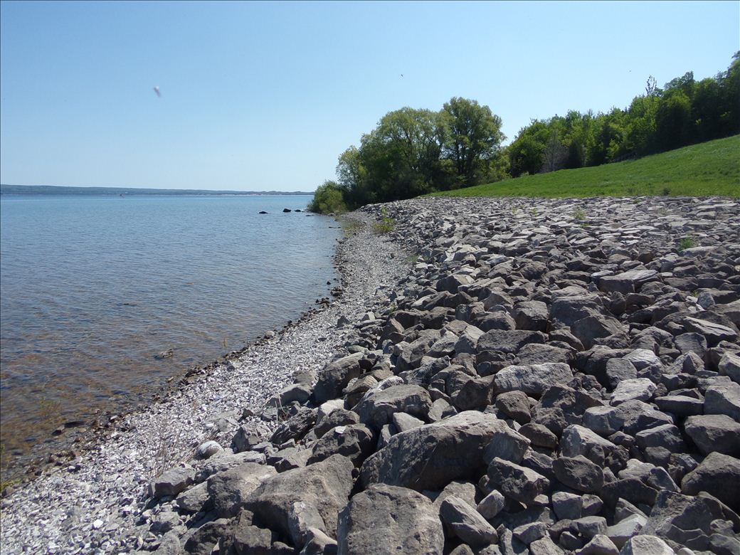Long carry down a steep hill. No designated path from parking down to the water's edge. Large rocks along the entire length of shoreline.