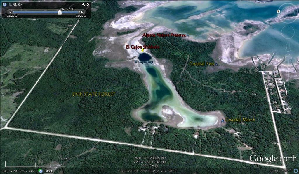 Long carry on un-marked trail; About 1/4 mile carry-in; Natural area with rare plants and plant communities; Provides access to El Cajon Bay Sinkholes; Public access to Misery Bay; Expansive areas of exposed bottom lands when Lake Huron water levels are low.