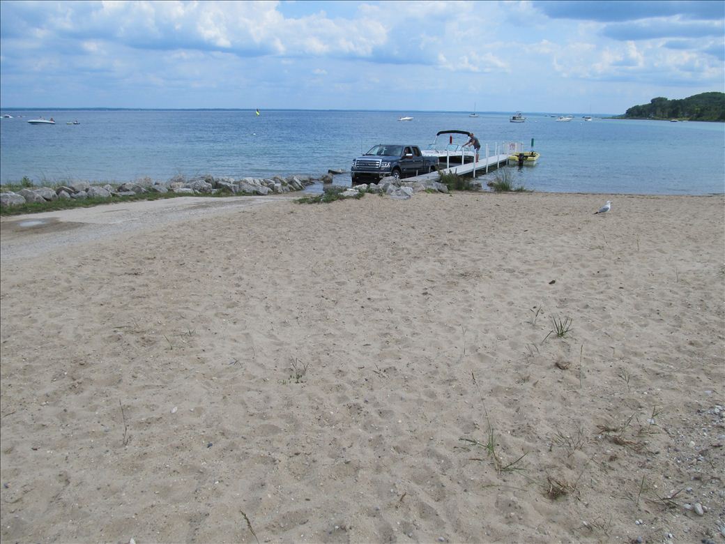 The only improved public beach access on the Old Mission Peninsula is located at Haserot Beach on Old Mission Harbor. The Township boat launch is also at this location