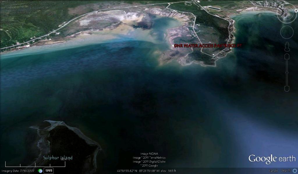 Site Not accessable by road, would need 4-Wheel Drive truck, could not acceess by car when wet, first 500 feet bad, rest Okay, No signs designating DNR access site, firm shallow alvar shoreling, very gradual drop-off
