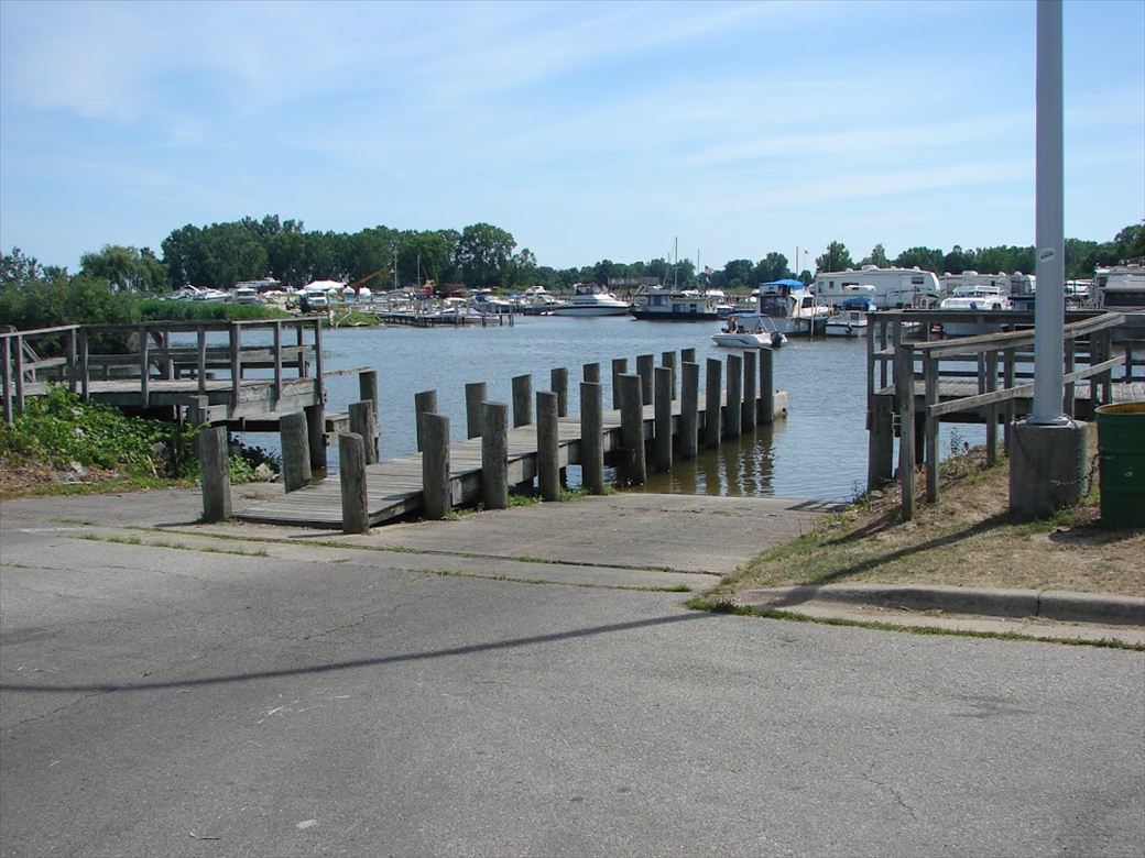 Boat ramp and dock on the Huron River near Lake Erie. Contains remnants of an 1812 military road.