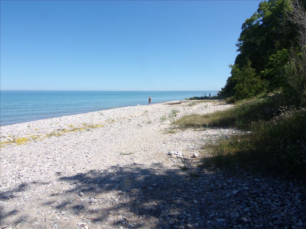 A popular beach area that is renown for its Petoskey stones. Large bluffs lead to a township park at the top with a picnic area with grills, play area and vault toilets.