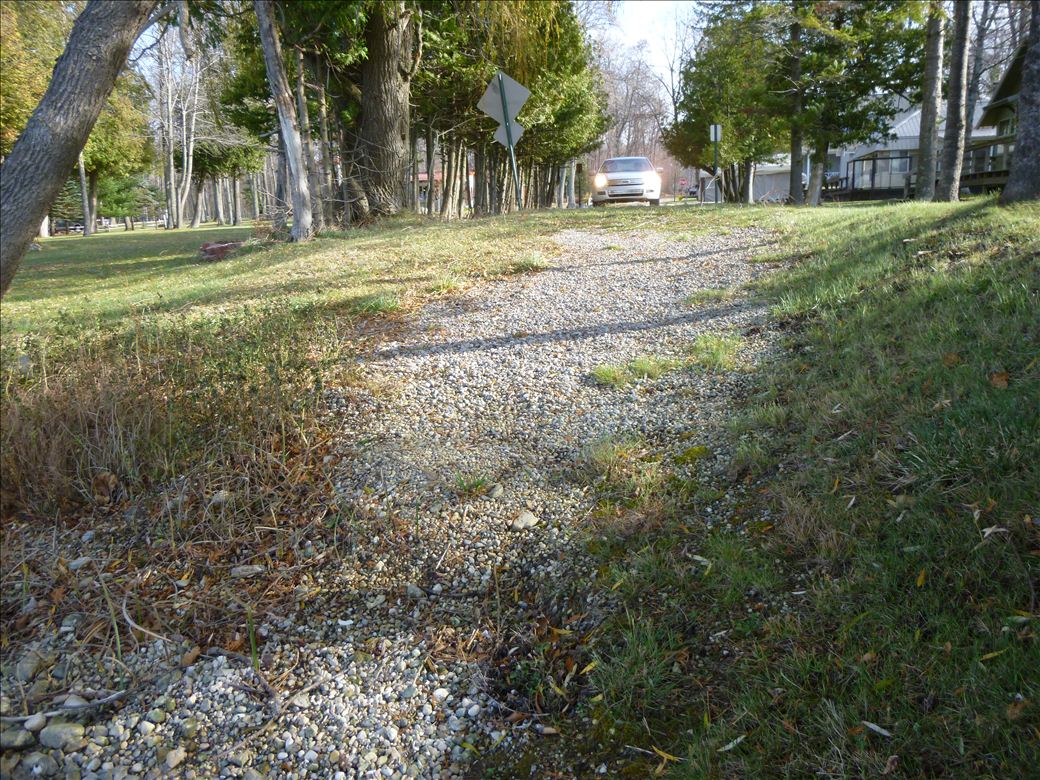 Gravel road to rocky & grassy shoreline. Residential area on both sides of access. No Parking