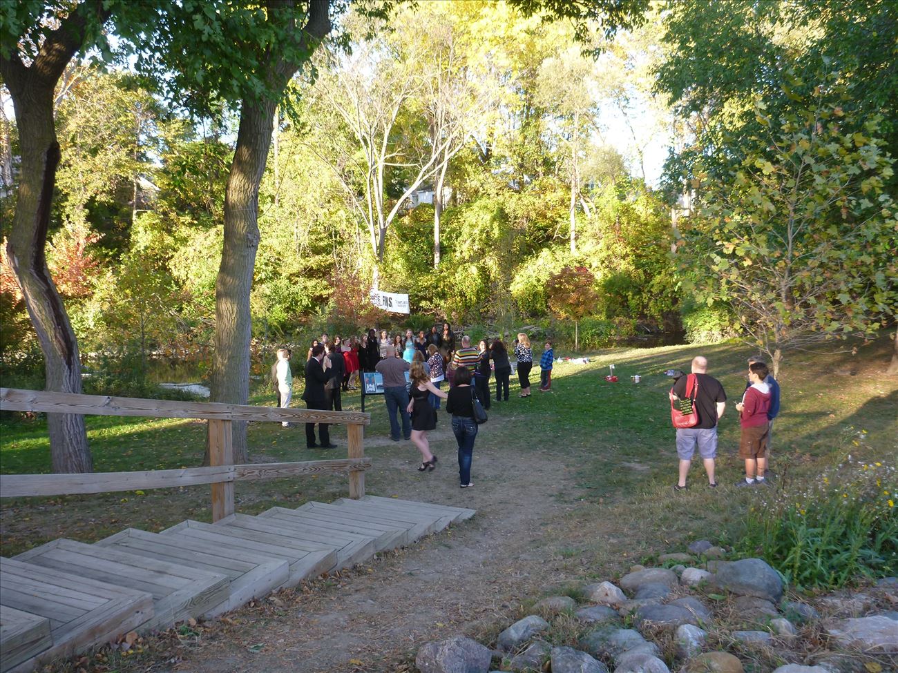 Park in lot for Wayne City Hall. Take wooden steps to riverbank then launch near drain pipe.